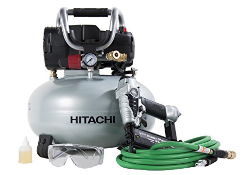The KNT50AB Finish Combo Kit from Hitachi is ideal for a wide variety of finish work and cabinetry projects. It comes complete with a 6 gallon 150 max PSI air compressor that delivers 2.8 CFM at 90 PSI via an oil free high efficiency pump our dependable (off the shelf) NT50AE2 2″ 18 gauge finish nailer 25′ Hybrid Hose safety glasses and pneumatic oil. The KNT50AB combines the quality and performance you can depend on to complete your finishing project with ease. Includes: 2″ 18 Gauge Brad Nailer (NT50AE2); Portable 6 Gallon Oil Free Pancake Air Compressor (EC710S); 25′ x 1/4″ Hybrid Air Hose (115158); Safety Glasses (875769); Pneumatic Tool Lubricant (115338). Kit includes the popular NT50AE2 2 18 Gauge Brad Nailer that is lightweight and well balanced for easy maneuverabilityKit includes the EC710S 6 Gallon Oil Free Pancake Compressor that delivers reliable and rugged performance and can operate multiple nailers depending on the applicationKit includes a lightweight 25 x 14 Hybrid Air Hose that includes industrial fittings is spiral reinforced for durability features heavy duty bend restrictors and remains flexible in extreme cold temperaturesKit also includes safety glasses and pneumatic tool lubricant6 Gallon pancake style tank delivers reliable and rugged performance150 PSI of max working pressure for longer run times28 CFM delivered at 90 PSI to operate multiple nailers depending on the applicationErgonomically designed simple flip actuation switch lets the user easily select bump fire or sequential fire modesElastomer grip adds comfort and prevents slippageTool less easy to clear nose for quick and simple nail extraction should a nail jam during use Manufacturer: Hitachi; Model: KNT50AB; MPN: KNT50AB; Part Number: KNT50AB; UPC: 717709020009; Color: ; Brand: Hitachi; Department: ; Size: ; Warranty: ; Label: Hitachi; Amazon Sale Rank: 16915;Buy On Amazon