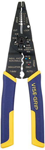 The IRWIN VISE GRIP Multi Tool Wire Stripper/Crimper/Cutter is a must have for anyone performing electrical work. With an induction hardened cutting edge this single tool combines a wire stripper wire cutter and crimper into one tool that strips and cuts 10 22 AWG crimps insulated and non insulated terminals and cuts bolts to size with a perfect lead thread. This handy tool features a pliers nose for pulling and looping wire and ProTouch grips for maximum comfort and reduced hand fatigue to keep working all day. Meets or exceeds all ANSI standards. Wire cutter with induction hardened cutting edge stays sharp longerStrips and cuts 10 22 AWGPliers style nose allows wire stripper to pull and loop in wireBolt cutter cuts bolts to size and leaves perfect lead threadCrimps insulated and non insulated terminalsMore Info and Reviews Manufacturer: IRWIN; Model: 2078309; MPN: 2078309; Part Number: 2078309; UPC: 803982926258; Color: Multicolor; Brand: Irwin Tools; Department: ; Size: 8 inch; Warranty: Full Lifetime Guarantee Each IRWIN hand tool is warranted to be free from defects in material and workmanship for the life of the tool under normal wear and tear except for damage caused by misuse or alteration ; Label: IRWIN; Amazon Sale Rank: 444;Buy On Amazon
