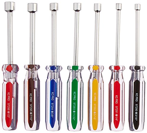 The 7 Piece Hollow Shaft Nutdriver Set from KC Tools includes the following sizes: 3/16″ 1/4″ 5/16″ 11/32″ 3/8″ 7/16″ and 1/2″. This set provides an assortment of frequently used nut drivers to accommodate a varied work load. The color coded handles allow for quick and easy hex size identification. Comes with a Lifetime Warranty. Set Provides An Assortment Of Frequently Used Nut Drivers To Accommodate A Varied Work LoadColor coded Handles For Easy IdentificationLifetime Warranty Manufacturer: KC PROFESSIONAL; Model: 97297; MPN: 97297; Part Number: 97297; UPC: 074972972979; Color: ; Brand: KC Professional; Department: ; Size: ; Warranty: ; Label: KC PROFESSIONAL; Amazon Sale Rank: 34949;Buy On Amazon