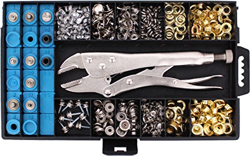 Kit pays for itself with 1 use! The Ram Pro All in one complete grommet washer and eyelet fastener snap insertion kit is the ultimate Hammer Anvil alternative it includes specialized plier setter heads for any project whether small or big with all pieces needed for any application to create reinforce or touch upSPECS 9 inch HD Plier 18 1 116 Interchangeable die and punch heads Hole Punch dies 516 Brass Grommets 0 516 1 Rivets 18 316 532 Washers 69mm 79mm Steel Eyelets 15mm Snap Screws 4x17mm Snap Sockets 135mm Snap Studs 14mm Snap Buttons 15mmDESIGN QUALITY Included is a Heavy duty Metal crimping Plier with a huge variety of High Quality Marine Grade Chrome Snaps Brass Grommets Aluminum Rivets Steel Eyelets Washersrings Studs Screws Buttons and more Comes in a Great sturdy housing case to keep it organized and easily storageHOW TO USE To clinch any type of fastener first put on the right attachment heads on the plier jaws then adjust the locking pressure accordingly increase pressure until right amount is triggered on the fastener Detailed instructions is included on back of the packageUSE FOR Install buttons replace or remove snaps press fasteners like grommets and rivets on leather suede plastic acrylic and any other type of fabric or Hole punch center punch countersink ideal enclosure for tarps shoes shower curtains totehand bags belts pants Jackets wallets camper tents boat covers sailcloths canopies canvas awnings riding gear luggage golf towels carts clothing pillow placemat Bimini carpet arts crafts and more Manufacturer: RAM PRO; Model: 2362; MPN: 2362; Part Number: 2362; UPC: 815518023621; Color: ; Brand: RAM PRO; Department: ; Size: ; Warranty: ; Label: RAM PRO; Amazon Sale Rank: 8986;Buy On Amazon