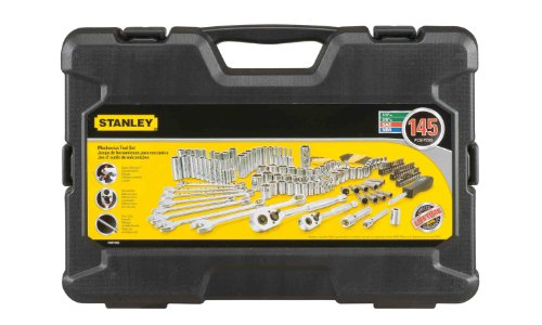 The STANLEY STMT71653 145pc Mechanics Tool Set offers a complete range of SAE and metric sized sockets and drive tools. Our socket sets combine the most popular tools for easy accessibility. Stanley drive tools are forged from high quality steel and finished in high polish nickel chrome or black chrome. Selected ratchet handles are ergonomically designed and have an easy to use thumb operated reverse switch mechanism. Sockets and extensions remain locked onto the drive until disengaged with an easy to reach low profile quick release button. Stanley sockets feature our Max Drive design a unique radius corner design that provides 15% more torque* to tighten fasteners easily and simplify the turning of rounded corners. Max Drive helps reduce fastener wear by minimizing contact on the outer 5% of the fastener helping to increase life expectancy. It also helps reduce slipping on frozen or rusted fasteners. All Stanley ratchets sockets and wrenches are manufactured globally to Stanley specifications meeting and often exceeding ANSI specifications. Chrome Vanadium forged body for torque strength and durabilityStanley Black DeckerQuick release switch and reversible mechanism for easy operationFull polished chrome finish for anti corrosion protection Manufacturer: Stanley; Model: STMT71653; MPN: STMT71653; Part Number: STMT71653; UPC: 754262232418; Color: black; Brand: Stanley; Department: ; Size: 145 Piece; Warranty: ; Label: Stanley; Amazon Sale Rank: 4722;Buy On Amazon