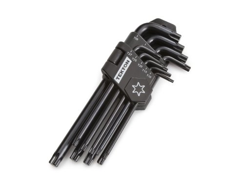 The TEKTON 9 pc. Long Arm Hex Key Wrench Set offers the most common Star hex wrench sizes to remove and install most star screws found in cars furniture equipment and more. The versatile long arm/short arm design offers extra reach on one end and extra leverage on the other. Made from heat treated chrome vanadium steel these wrenches will deliver years of consistent performance. Precisely sized ends are chamfered to slide easily into fastener reducing wear on the wrench and damage to fastener head. The unique hinged storage case opens flat making it easier to get wrenches in and out and is color coded so you always know which set to choose.